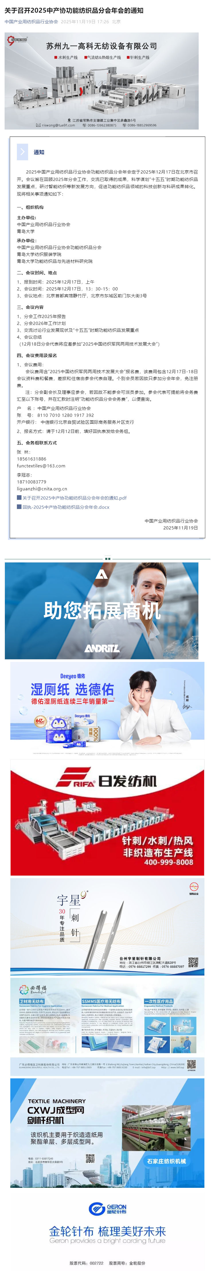 关于召开2025中产协功能纺织品分会年会的通知
