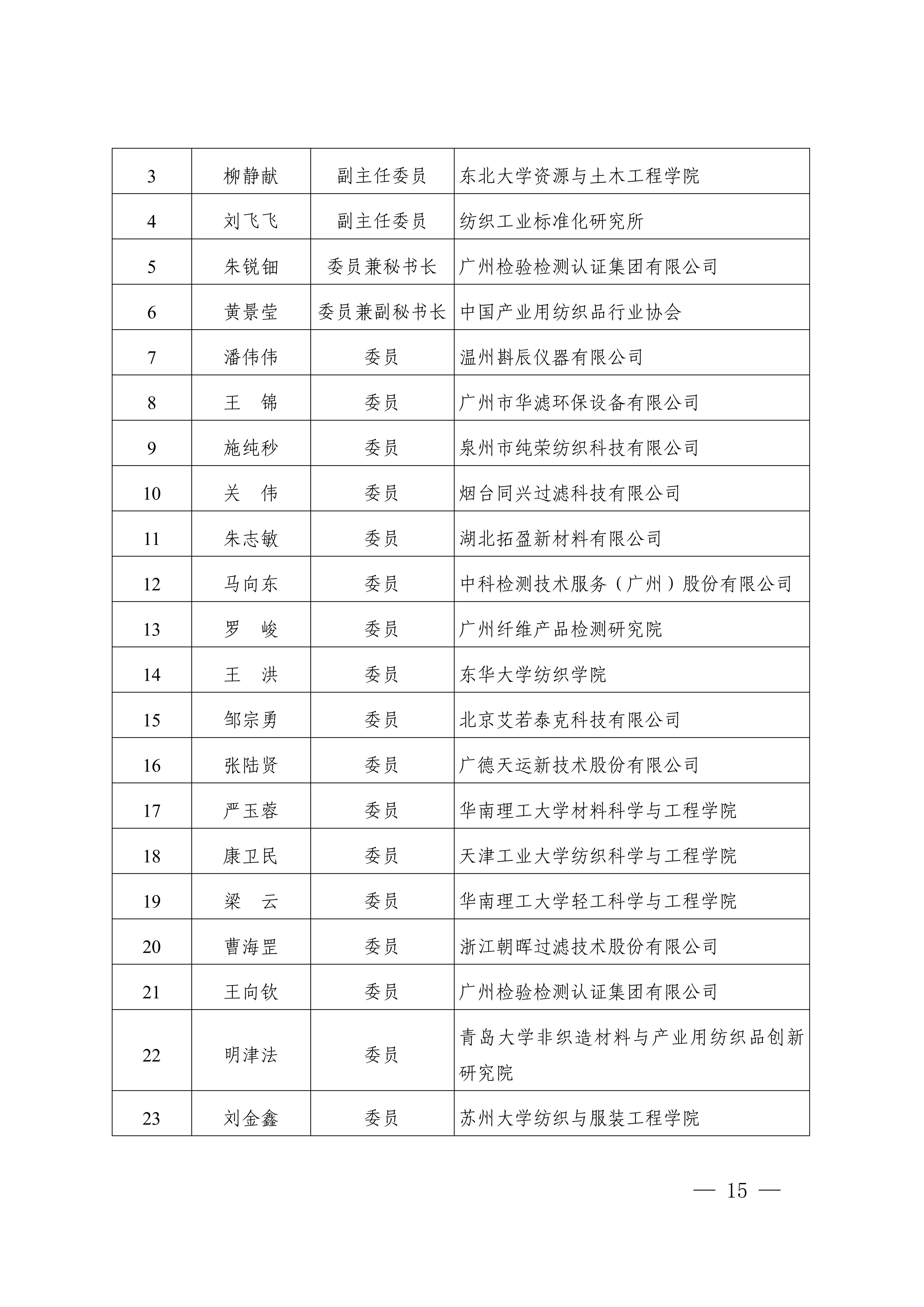 全国产业用纺织品标准化技术委员会 过滤分离用纺织材料分技术员会 SAC/TC606/SC2