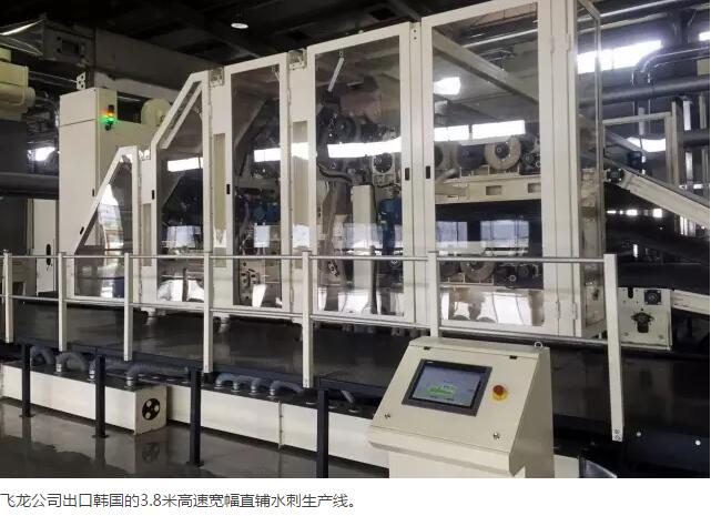 韩一斌:飞龙公司生产的非织造设备主要在幅宽、高速、节能、智能化控制等方面进行了重点突破,公司研发生产的非织造机械曾先后8次填补了国内空白。近年来,公司先后推出了3.8米高速宽幅直铺水刺生产线、9米特宽幅针刺土工布生产线、新型热风法非织造布生产线、高速汽车地毯生产线、混合纤维湿法成网水刺非织造布生产线等新产品。