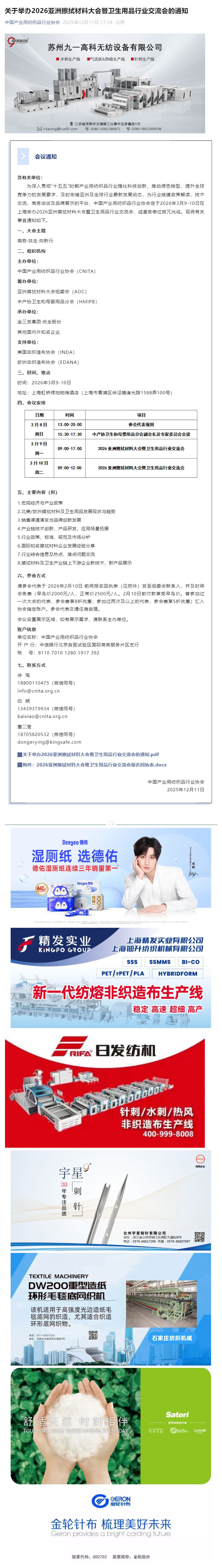 关于举办2026亚洲擦拭材料大会暨卫生用品行业交流会的通知