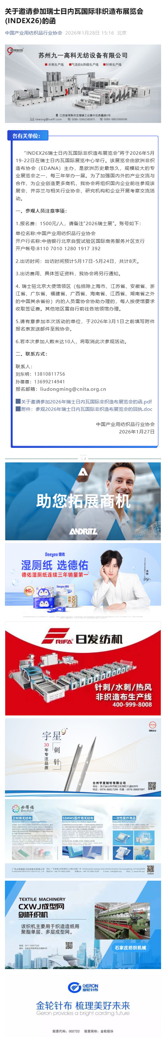 关于邀请参加瑞士日内瓦国际非织造布展览会(INDEX26)的函
