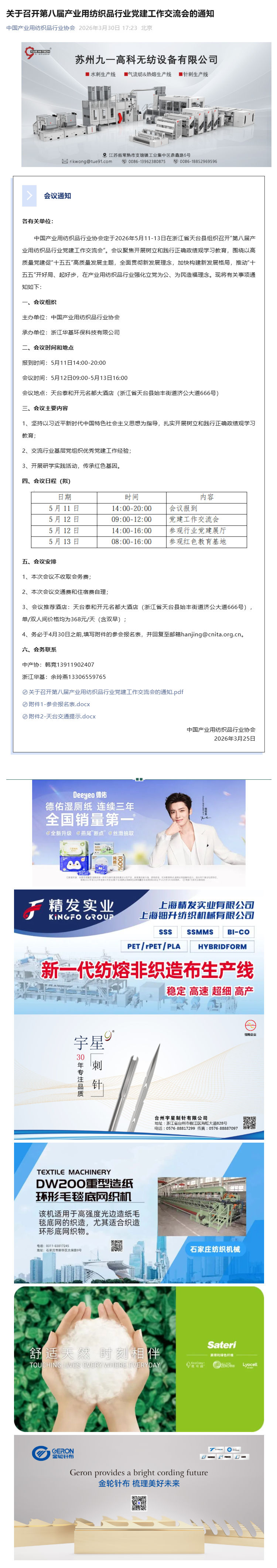 关于召开第八届产业用纺织品行业党建工作交流会的通知