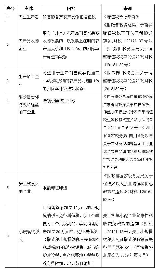 纺织企业可以享受到的税收优惠较多,其中部分是针对原材料农产品的,部分是小微企业普惠性优惠的,部分是地区优惠的,还有少量针对特定从业人群的。总体而言,纺织企业税收优惠政策颇多,下表将简要梳理。