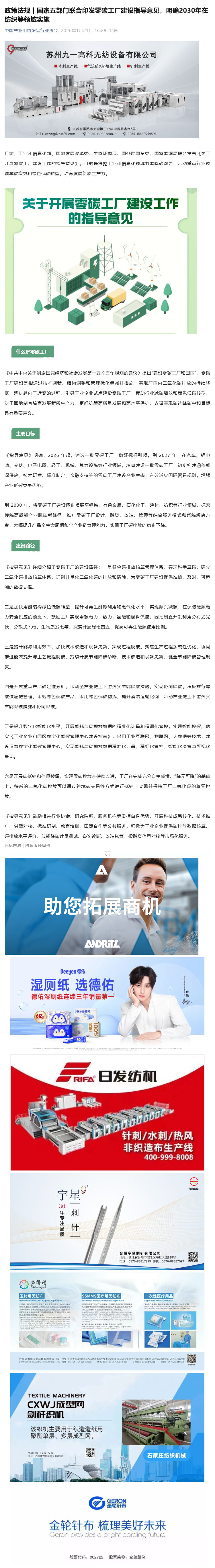 政策法规 | 国家五部门联合印发零碳工厂建设指导意见,明确2030年在纺织等领域实施