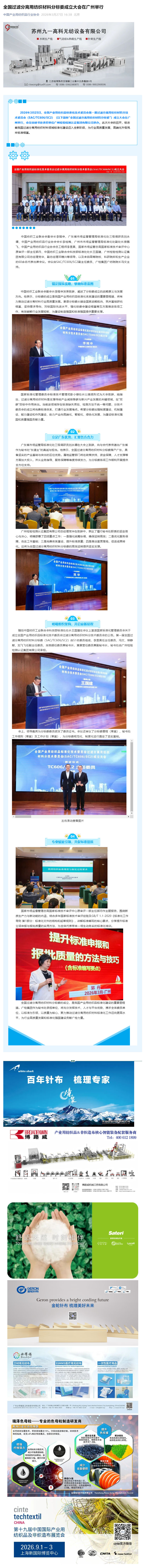 全国过滤分离用纺织材料分标委成立大会在广州举行