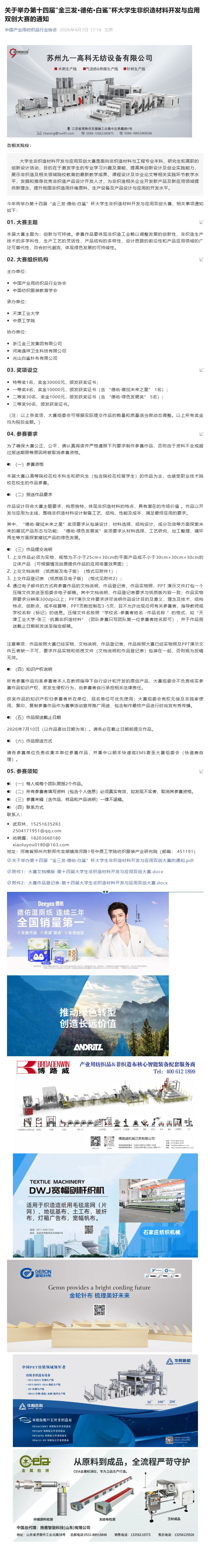 关于举办第十四届“金三发·德佑·白鲨”杯大学生非织造材料开发与应用双创大赛的通知.pdf
